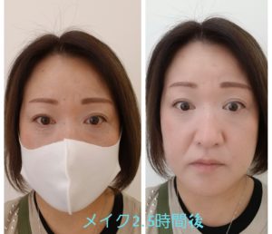 ●メイク5時間後です、メイク直し等はしておりません。マスク部分は、やはり少し取れています。